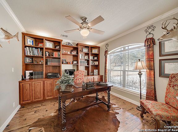 Stunning hill country home on private 1 acre w/ mature trees. Beautifully maintained, well-loved single story w/ 4bedrooms,3.5 baths,recent updates & architectural details makes this home show like a model.Move-in-ready home boasts over 3600 sq. ft of indoor living & entertaining space. Gorgeous hardwood floors, wood beams, wine nook,custom cabinets, gas cooktop, large island & breakfast bar are just some of it's desirable features. Resort style living w/covered patio & sparkling pool. Don't miss this one.