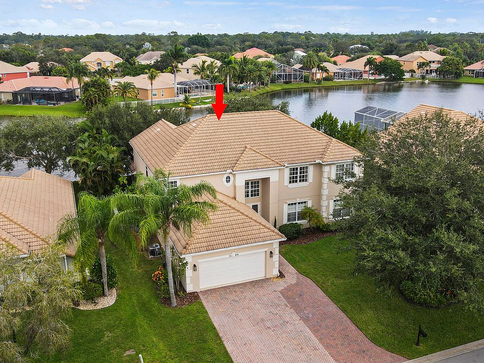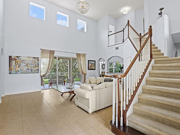 Perfect for multi-generational living, this spacious estate home is built w/ CBS construction, impact windows, doors & sited on a premier fully fenced lakefront lot. The gracious living area has volume ceilings and an outstanding floor plan. The primary suite plus additional bedroom are conveniently located on the main level. Upstairs, you'll find the remaining bedrooms, a loft, and a distinctive ''West Wing'' offering two bedrooms plus a grand bonus/flex space (perfect for a movie theater, golf simulator, club room, or any dream setup.) Other highlights include renovated primary bath, upstairs balcony, an additional staircase, extended driveway, and a striking front entry door. Exceptional value in this well-built home, ideally located within a gated community just minutes from I95