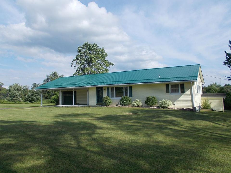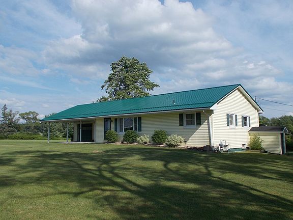 Affordable one floor living!!!! 2 bedrooms, kitchen and full bath, large living room graced with a gas fireplace. Breezeway between home and 2 car attached garage. Shed for all of your toys , large level 1.96 acres with paved driveway. This style of home doesn't come up very often, so don't miss out on this one. Bonus new roof installed. OPEN HOUSE 7/30 1--3