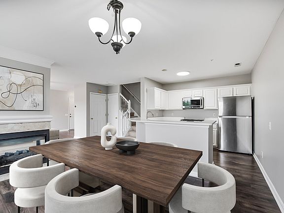 Welcome to this stunning 2-bedroom, 2.5-bath penthouse condo in the sought-after Dominion Station community! With over 1,200 sq ft of stylish and comfortable living space, this light-filled home features upgraded flooring on the main level, brand-new carpet upstairs (2025), and fresh paint throughout. The main level offers an open-concept layout where the living and dining rooms share a cozy three-sided gas fireplace perfect for both relaxing and entertaining. The gourmet kitchen is a chef's dream, complete with sleek quartz countertops, stainless steel appliances, gas cooking, and white cabinetry. A convenient powder room is also located on the main level. Step out onto your private balcony with peaceful views of the community clubhouse and pool ideal for morning coffee or winding down in the evening. Upstairs, you'll find two spacious bedrooms, each with walk-in closets and private ensuite baths. The luxurious owner's suite features a spa-like bath with dual-sink vanity, soaking tub, and separate stand-up shower. The laundry closet is also conveniently located on the bedroom level. Enjoy a pet-friendly community with access to playgrounds, walking paths, pool, and more. This home includes one assigned parking space and ample visitor parking. Monthly fee includes water/sewer, snow, trash removal, and community amenities. Located just minutes from Wegmans, Dulles Airport, the Silver Line Metro, golf courses, an ice skating rink, multiple parks, and all of the shopping and dining options in Dulles and Reston Town Centers, this beautifully updated penthouse condo offers the perfect blend of comfort, convenience, and lifestyle. Don't miss this!