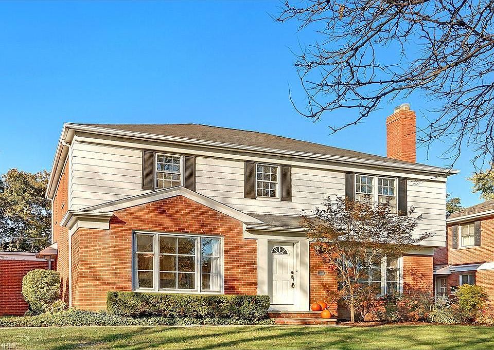 Terrific 1950s brick colonial with spacious rooms, a wonderful flow, and many, many updates. Oversized windows throughout the first floor flood the main rooms with natural light. The home offers a highly versatile layout: The L-shaped living room with handsome stone fireplace is currently used as both living and dining space. The formal dining room -- currently used for billiards -- could also be used as a family room or home office. The updated white kitchen with granite counters, glass tile backsplash, ceramic floors, and stainless steel appliances offers abundant cabinet space and opens to an additional family/media room with built-in shelving. The lower level features a fantastic recreation room that spans the width of the home, complete with built-in wet bar. Upstairs, the master bedroom offers two closets and an expanded and completely remodeled private bath. Three additional nicely-sized bedrooms share a second updated bath. More features: First floor powder room, first-floor laundry room, central air, attached two-car garage, cozy and private rear deck. Located on a lovely tree-lined Shaker Heights street, close to parks, library, schools, restaurants, public transportation, and more. Will be city point-of-sale compliant at transfer. What a great home! Call for your private showing.