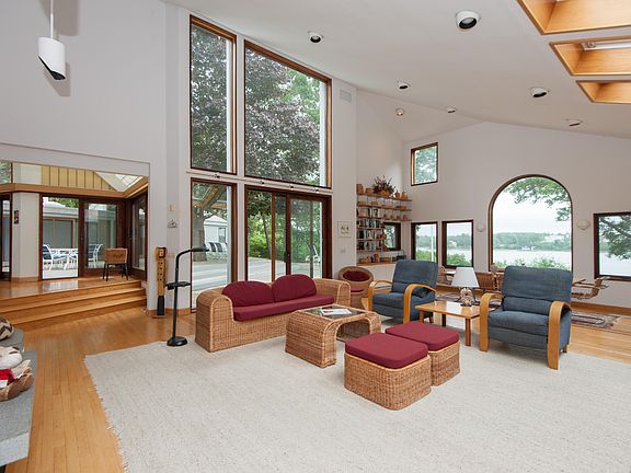 219 & 221 is a spectacular Scraggy Neck waterfront property on exclusive Squeteague Harbor in Cataumet with a private boathouse and dock, beach access, and an adjacent 3.4 acre waterfront parcel comprising of 7.7 total acres. Majestically situated atop a 35-foot bluff, this exquisite property provides panoramic views and the protection of Squeteague Harbor and beyond to Amrita and Lawrence Islands. The modern, Nordic-inspired, 5 bedroom, 3414 sq.ft. home incorporates the natural landscape into its design. It features soaring skylights, high ceilings, Kalwall design windows and custom nautical-inspired cabinetry. A flowing single story open floor plan gives access to the expansive 1568 sq.ft. deck from every room making it ideal to enjoy breathtaking views and coastal breezes.