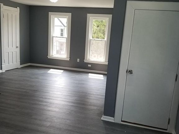 The apartment includes a spacious living room, dining room, and two bedrooms. The renovated bathroom features a brand-new tub, toilet, modern fixtures, and vanity. The kitchen is equipped with new stainless-steel appliances, updated cabinets, and countertops. Modern light fixtures and brand-new flooring run throughout the entire apartment. New laundry and dryer unit is also included in the unit. New doors and windows allow for plenty of natural light.