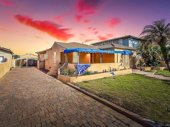 Ocean breezes in one of Chula Vista’s most desirable pockets, just minutes from downtown Chula Vista’s shops, dining, and the exciting new developments, this Spanish-style home sits on a sprawling 10,500 sq. ft. lot and offers a rare opportunity to own a piece of history with modern potential. This 4-bedroom, 3.5 bathroom home (plus an additional half bath in the garage) features a long and narrow layout, allowing tons of natural light to pour in throughout the space. Original gorgeous wood floors, a large laundry room, gorgeous pavers yard (a $65K upgrade), large walk-in primary closet with built-ins (a $7k upgrade), mudroom, and tankless water heater add to the home’s charm and functionality. Step outside to your private backyard oasis, complete with a pool, spa (newer pool heater and pump), and lush landscaping—perfect for relaxing or entertaining. The newer roof, four-car detached garage, and RV parking provide convenience, while the ADU potential makes this property an incredible investment opportunity. Take advantage of two large storage sheds and tons of interior built in storage space. Driveway gate has new automatic motor and remote key access. Nestled on a beautiful tree-lined street within walking distance to shops, this home blends character, space, and location. This home has it all.