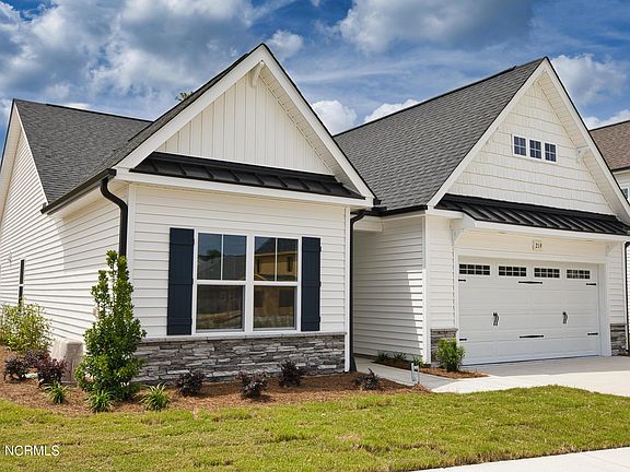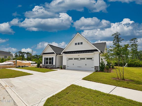 Currently under construction is the Canton from Caviness & Cates. This home is being built on a large private flat homesite, backing up to a large undeveloped area. This home offers an open living area, kitchen and dining area flowing seamlessly together for the perfect space to entertain. The gourmet kitchen boasts timeless white cabinets, large center island, pantry, ''Carrara Cloud'' quartz countertops, ''daphane white'' herringbone backsplash, and stainless-steel appliances, including a dishwasher, natural gas cooktop, range hood, wall oven and built-in microwave. The great room offers cathedral ceilings and a cozy gas fireplace. Just off the dining area is the Carolina Room with cathedral ceiling and screened porch, offering the optimal flow to your private backyard for entertaining or grilling out on your patio. The first-floor primary suite is tucked away from the other bedrooms and includes a trey ceiling, spacious walk-in closet with wood shelving, double vanities, 6-foot, tiled zero entry, walk-in shower with bench and frameless shower door, private water closet and linen closet. Two additional bedrooms and a full hall bathroom make a great suite for guests or other family members. Just off the 2 car garage, a mud room with built in drop zone, laundry area, and closet complete this home. Additional features include Luxury Vinyl Plank flooring throughout the first floor living areas, crown molding in the foyer and primary suite, wainscoting in the foyer, epoxy garage floor, natural gas tankless water heater and gas HVAC. The Sanctuary at Forest Sound is centrally located in the heart of Hampstead. 15 minutes to Wilmington or Surf City/Topsail and just 1 mile off the Intracoastal Waterway. Future proposed amenity includes a boat storage area. All options, finishes and completion dates are subject to change. See agent for details on selections. Photos and video shown are of a completed home; selections will be different.