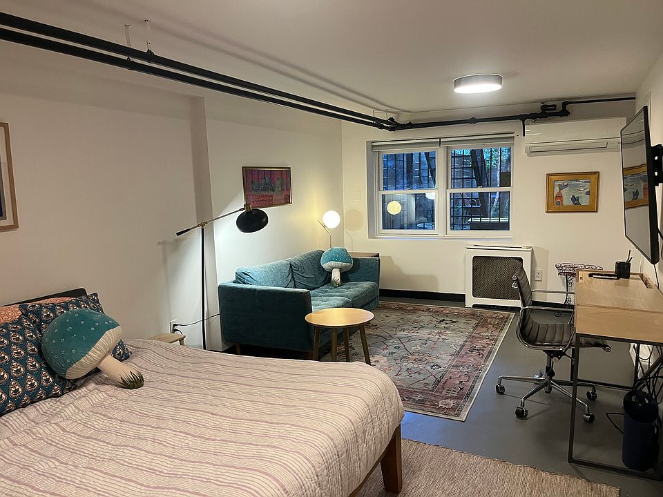 Available Oct. 22 to Dec. 20. Quiet Brooklyn garden studio apartment located in Greenwood, a short walk to the 36th Station -- D/N/R lines -- Industry City, Sunset Park, Greenwood Cemetery. This is a newly renovated furnished studio with queen-size bed, sofa, washer/dryer, well-appointed kitchen w/dining table, split A/C system, Jacuzzi in bath tub/shower, lots of closet and storage space. Rent includes Internet, smart TV, all utilities and access to a shared backyard (we live in the above apartment). Nearby coffee shop, excellent pizzeria, authentic taquerias and asian restaurants.