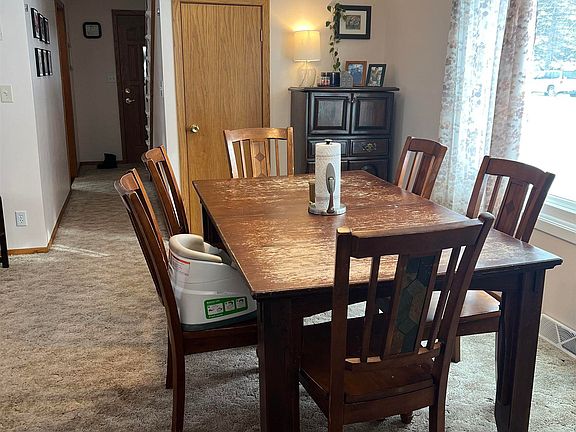 Looking for a 3 Bedroom Traditional on great lot with many major updates already done? This could be the one. Main floor features large bonus room(currently used as playroom) but could make a great office/Den, craft/hobby room etc. Large updated kitchen, DR/LR combined with a built in hutch & main floor laundry(currently in kitchen) All 3 bedrooms are up and good sized w/ceiling fans, & full bath. Hardwood floors under carpeting. Basement has great storage space. 3/4 bath(separate rooms) potential for possible future finishing. Radon mitigation system installed 10/2021. Updates include: Furnace(2009) Roof (2012) Windows, siding, doors(2010-2011) Driveway/Parking area (2013) New sidewalks (2013) And More! Great lot (3 parcels), 1 car garage, shed (12x16) both prepared for wiring, & large parking area. Maintenance-free decking, Beautiful landscaping, patio & partially fenced yard, ALL on a quiet street.