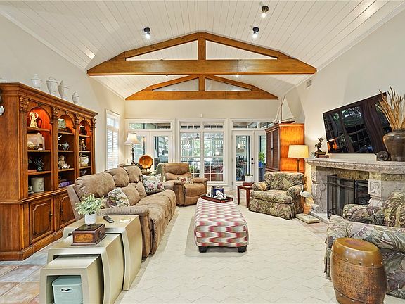 One-of-a-kind 5B/3.5B mid-island home perfect for entertaining and enjoying all of the amenities it has to offer. Walk into the large open living room with cathedral ceilings & gleaming hardwood floors. Continue to the formal dining room with enough room to seat 12, custom gas log fireplace and wet bar with ice maker & 2nd dishwasher. The gourmet kitchen has granite counters, double copper sink, Bosch appliances, double wide in-line s/s refrigerator/freezer, 6 burner gas cooktop, built-in wall oven and microwave, and breakfast bar that can seat four. Breakfast nook is off the kitchen. The kitchen is open to the family room with beamed vaulted ceiling and another custom gas log fireplace. A screened porch as well as a custom covered deck with a 3rd custom-built wood burning fireplace for those cool mornings. Back inside and off the kitchen is a half-bath, large laundry room with double sinks. There is a very large flex room with gaming table and pool table and room for a couch and chair. The main floor primary suite is on the other side of the house in its own wing complete with a custom bathroom with his & hers commodes and a bidet, double vanities, granite counters, travertine floors, garden tub and walk-in shower, and large walk-in his & hers closets. The second primary bedroom ensuite bedroom is also on the main floor. Bedrooms 3 & 4 are upstairs and share a jack-and-jill bathroom. The 5th bedroom room/office is above the flex room. The connected garage is large enough for two large vehicles plus storage. Owners have added an outdoor bathroom. A newer whole house generator is included. New motor on security gate and 2 new Trane HVAC systems were just added. Many other upgrades and changes made during ownership ( a list is available upon request. Square footage from appraisal and inspection (different than tax record.) Located in an "X" flood zone and no HOA. Home inspection is also available upon request. This home has been lovingly cared for, maintained and is awaiting its new owners. Gotta see this one to appreciate all the upgrades it has!