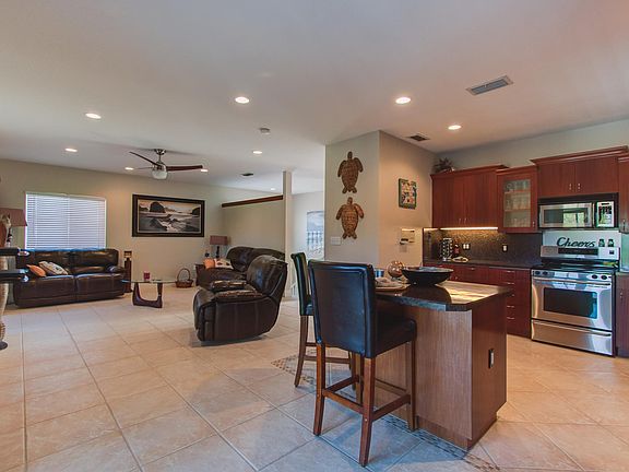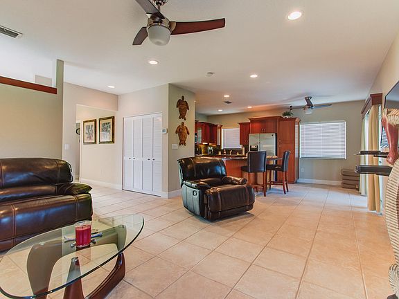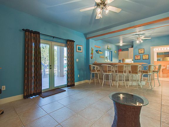 Waterfront home in immaculate condition, legal above flood downstairs has a great wet bar entertaining area with it's own Full Bath all connected by interior stairway. Newer AC,solar water heater and appliances,all tiled and freshly painted. Garage was recently permitted.Screened Patio, property is completely fenced with a electric front gate. Property is hooked up to sewer. Great Homeowners Park