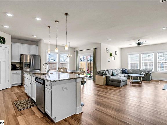LOCATION LOCATION in the beautiful Lost River Subdivision in Simpsonville! This immaculate 4-bedroom, 3.5 bathroom home has an open floor plan perfect for family life and entertaining! Pulling up to this home you see the covered front porch and enter to see the natural light steaming through from all sides. 3 of the 4 bedrooms are downstairs. One being the primary that is attached to a large primary bathroom AND flows to the laundry room! How convenient!! The primary HUGE walk in closet is an added feature. 2 more bedrooms share a connecting bathroom as well! Also downstairs is a separate office/study, a spacious half bathroom and mud area entering from the 2 car garage!! The open floor plan great room with a gas fireplace flows with the breakfast or dining area into the spacious kitchen with huge island with granite countertops! The appliances are stainless steel and refrigerator conveys! As if this is not enough, upstairs is another bedroom, full bath and loft!!! Topping all this off with a fully fenced, private backyard and covered patio! Come see this home today!