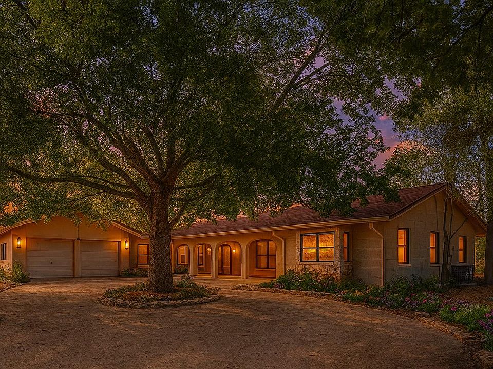 Evenings under mature trees, light, cool breezes, and Hill Country peace. Tucked beneath towering trees on over half an acre, this graceful 3-bed, 2.5-bath home offers more than 2,100 sq. ft. of space designed for comfort and quiet living. The moment you arrive, the circular drive and wide front porch framed by stone arches welcome you home. Step inside to vaulted ceilings, generous rooms, and thoughtful updates that honor the home’s timeless character. The open living area flows to a spacious screened porch — perfect for quiet mornings with coffee or starlit evenings beyond a secret garden gate. This 3 BR 2 1/2 bath home is located in one of Wimberley 's well established neighborhoods, Paradise Valley, where residents enjoy a 16 acre Blanco River Access Park. It offers high vaulted and beamed ceilings, Located minutes from Wimberley’s charming square yet tucked in a peaceful neighborhood with native wildlife and big-sky sunsets, this home feels like a getaway every day.