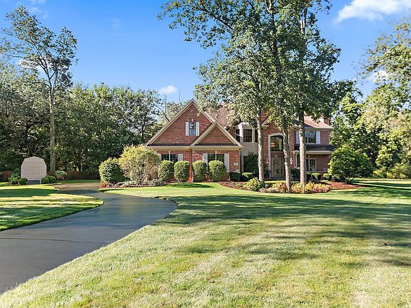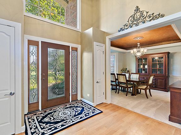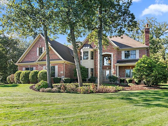 This stunning custom-built home, crafted with superior attention to detail in 2006. Located in the coveted Tall Oaks subdivision and the highly rated District 301 school system. From the moment you arrive, you'll be charmed by the welcoming front porch, front brick exterior, winding paved driveway and extensive professional landscaping. Step inside to an impressive two-story foyer that offers stunning views of the home's elegant interior. The formal living room features a gas log or wood burning fireplace which features exquisite custom work wood detail and a marble hearth. Glass doors open to the front porch, seamlessly blending indoor and outdoor spaces while allowing natural light to flood the room. Across the foyer, the spacious dining room, adorned with tray ceilings and illuminated lighting, features wainscoting that adds a classic touch. The room comfortably accommodates a large table and additional furniture, making it perfect for hosting. A butler's pantry that includes a bar fridge and custom hickory cabinetry which leads to the extraordinary kitchen, featuring custom hickory cabinetry, granite countertops and beautiful stone backsplash, a large island, hardwood floors, and a spacious walk-in pantry. The eating area provides ample space for a large table and is flooded with natural light from the windows, offering great views of the backyard. The adjoining family room boasts 10-foot ceilings with beautiful tray ceilings, surround sound, and framed by elegant columns, adding a sense of grandeur and openness to the space. Adjacent to the living room, the first floor fifth bedroom, with a full bath conveniently located just outside offers flexibility as a guest suite or in-law accommodation. A laundry room with built-in cabinets, utility sink and blue slate flooring completes the main level. Upstairs, you'll find 4 spacious bedrooms and 3 full baths, all adorned with 9-foot ceilings. The master suite includes tray ceilings, a charming sitting area with views of the wooded backyard, and a custom built-in jewelry cabinet. The luxurious master bathroom boasts double sinks set in granite countertops, a jetted soaking tub framed by elegant columns, and a spacious shower with ceramic tile walls and dual shower heads. A private water closet adds convenience, while a dedicated makeup sitting area offers a personal retreat. The large walk-in closet has built-ins with a one-of-a-kind surprise storage nook perfect for suitcases. One additional bedroom features an ensuite bath and walk-in closet, while the other two bedrooms offer ample space for bedroom furniture and tons of closet space. The large bonus room can be used as an additional family room or even the 6th bedroom with another walk-in closet. The expansive unfinished basement, with 8-foot ceilings, electrical, and plumbing already in place, is ready for your personal touch. Outside, enjoy the .76-acre wooded lot with mature landscaping, and a spacious paver brick patio. The oversized, heated 3-car garage includes cabinets, a workbench, and a lawn tractor. This exceptional home blends country tranquility with city convenience settled on an amazing lot conveniently located by Fitchie Creek and other Kane County forest preserves.