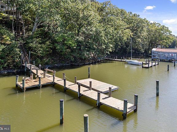 TURN-KEY ON MILL CREEK, DRUM POINT! This beautiful move-in ready home is being sold furnished, and offers the perfect blend of comfort, style, and waterfront living. The elevation assures no flood plain, the hardwoods are gorgeous in the autumn months, shady in the summer. The home is ideal as a full-time residence, a vacation retreat, or an income-producing Airbnb. (The Sellers have records of 18 months of part-time STR). The lot offers extra parking, access from the driveway level to a great roll-up garage door with a walk-through to the creek side of the house. Generally speaking, the architecture and low maintenance features are sensitive to the waterfront lifestyle: the synthetic slate roofing is known to be long-lasting, the vinyl exterior is known to be low maintenance, rock scape instead of plantings underneath. The multiple levels are worked into the slope of the site, and the design provides access points that make sense: the storage garage is closer to the creek than to the street, the levels of decking are easily accessible from the street side or the creek side, etc. Water enthusiasts will love the private pier–ready for your boat, kayaks, or jet skis!! Water depth of 6 ft+ means that deep-keel sailboats will be happy here in the multiple slip options, and the high elevation sides of Mill Creek with old growth trees offers protection from storms. Included in the sale is a floating pier platform…perfect for kayak and SUP launch, additional play area! The home’s entrance is via vestibule, and gives that perfect arrival effect. The kitchen-dining-living-deck space plan for this main level makes a perfect flow for entertaining as well as everyday enjoyment of the home. Pops of color throughout the house make for a cheerful space! Bonus: a generously sized bedroom and a full bath on the main level. The large primary suite on the upper level is a real retreat…it has Mill Creek views, a large sitting area, and a private bath with shower and custom vanity. Bedrooms 3 and 4 are also on the upper level, with a shared bath. A very special chat-n-chill spot is the lower level tiki bar!! Grab a drink and head to the pier or go wildly into the night with your mai tai! Whether you’re fishing, crabbing, or simply enjoying the peaceful surroundings, this property has it all. Don’t miss your chance to make your waterfront dreams a reality!!