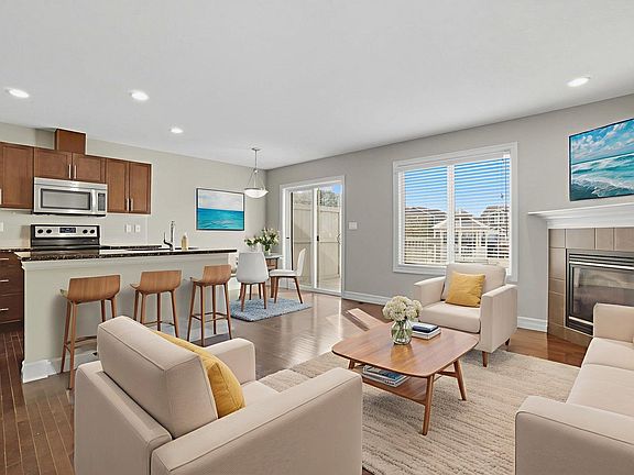 Gas fireplaceBig bright windowsPatio doorsStone countertopStainless steel appliancesMicrowave hood fanCorner pantry