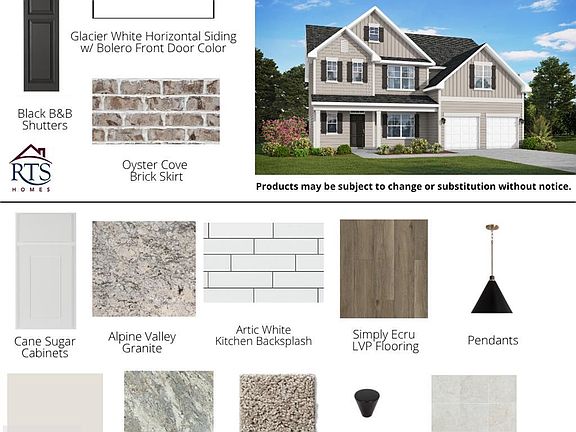 The Screven plan, located on Tibet Road in Sassafras Phase 2, exemplifies spacious living with its two-story design featuring five bedrooms and three baths. Upon entering you're welcomed in by a grand two-story foyer. The lower level includes a large kitchen with an island, a breakfast nook, and a dining area that connects to a spacious great room with an electric fireplace. A conveniently placed bedroom and full bath serve as a guest suite. Upstairs, the primary suite boasts a large bath, walk-in closet, and separate shower, alongside a shared bath for three additional bedrooms and a laundry area. Artistic renderings may differ from actual features and layouts.