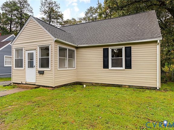 Tucked away on a quiet street in Sandston this handsomely renovated Cape Cod features 3 bedrooms, 2 full baths and 1,426 SF of living space with off street parking and awesome outdoor living with a extra large deck off the rear of the home and backing up to woods for a perfectly private setting! Walk into an open and bright living room with oak hardwoods, ceiling fan, arched openings lead you into the dining room. Nice sized dining room also features oak hardwoods, chandelier and opens into the kitchen. Graciously sized kitchen featuring oak hardwood floors, classic white shaker style cabinets with soft close doors and drawers, granite counter tops, white subway tile back splash, open shelving, under mount lighting, recessed lights and a step down eat in area! Open the back door off the eat in area and walk out onto the massive rear deck overlooking the picturesque back yard with mature trees and lots of privacy. Renovated hall bath features an oversized vanity with quartz counter tops and a large cast iron tub with tile to the ceiling and 2 niches! Nice sized bedrooms on the 1st floor offer hardwoods and overhead lighting with good closet space. Walk up to the private primary suite featuring a nice sized bedroom area LVT floors, larger closet and recessed lighting! Primary ensuite boasts a walk in tile shower with tile to the ceiling, open shelving and nice sized vanity! Also features a nice sized laundry room with side by side washer, dryer with plenty of extra storage.