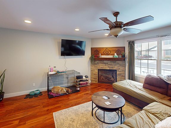 This 3 bed 3.5 bath END unit has all the upgrades! Beautiful arcadia hardwood flooring flows throughout main living spaces. Living room w/gas fireplace open to dining area, coffee/wine bar and deck with amazing views. Large kitchen w/granite countertops, ss appliances and pantry. Two spacious upstairs bedrooms w/vaulted ceilings have en suites. Primary bedroom features a soaking tub and tiled steam shower. Finished basement with 3rd bedroom, full bath, wet bar and second living space. Conveniently located to shopping, restaurants, and interstate. Measurements are approx.