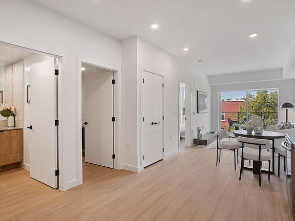 Tall ceilingsIn-suite washer and dryerPolished kitchens and bathroomsStainless steel appliancesQuartz countertopsWood grain cabinetryRoller blinds