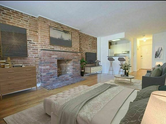 This enormous studio is located in an elevator building on 81st Street between 2nd and 3rd Avenues. The open concept kitchen has great cabinet and counter space as well as a breakfast bar that overlooks the kitchen with room for bar stools. There is a beautiful exposed brick wall with a decorative fireplace which gives the apartment a charming feel. The high floor and south facing windows receive streaming sunlight at all hours of the day. There is excellent closet and storage space. This apartment is located in a beautiful elevator building in the heart of the Upper East Side. Situated near Central Park as well as the 4/5/6/Q trains. It features laundry, live in super, in house management, and personal training gym. Photos are representative of typical units in the building. Federal, State and Local Fair Housing Laws protect individuals from housing discrimination. It is unlawful to discriminate based on certain protected characteristics, which include, but are not limited to: race, creed, color, national origin, sexual orientation, gender identity or expression, military status, sex, age, disability, marital status, lawful source of income or familial status