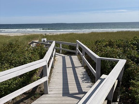 This fully furnished winter rental (available now through May 31, 2026 at $2250/month) is a two bed, two bath 1,130 sq ft condo steps from the Grand Beach area close to Pine Point. Views of the ocean from the living room and side deck balcony. Second deck off the bedrooms overlooking the marsh and the gorgeous sunsets. Comfortable living space with an open living room, dining room, and kitchen. Both bedrooms have ample closet space and a full bath located in the primary bedroom. Washer/dryer included within the unit.