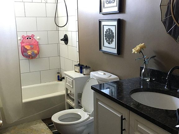 Two bedroom/1 bath. Two car garage with gated driveway. Driveway fits up to 3 cars. Large backyard with brick patio. Ceiling fans in both bedrooms. Original hardwood floors in living area. Includes washer, dryer and stove. Owner pays for water and landscaping. Owner pays for water. Stove, washer & dryer included.