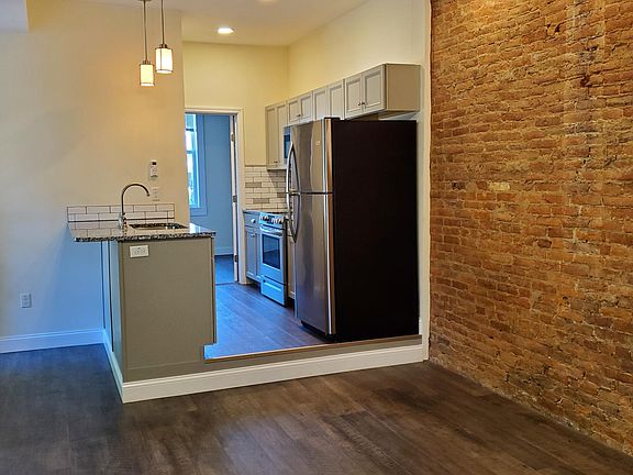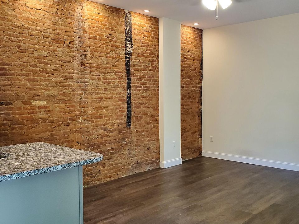 Recently remodeled first floor unit in the heart of downtown Lancaster, with private entrance. 9-10 foot ceilings, exposed brick in living area and bedroom. Beautiful kitchen with granite countertops, undercabinet lighting, an island setup for bar stools, with a dual bay stainless sink. Stainless steel appliances. Modern bathroom with tiled shower and glass door.