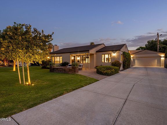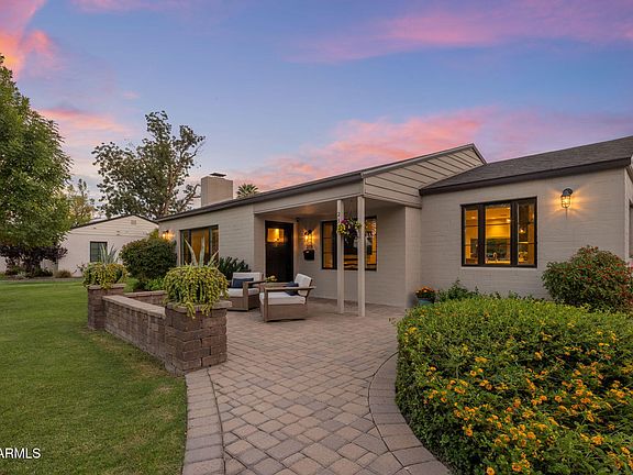 Discover perfection in Windsor Square Historic District, one of Phoenix's most sought-after neighborhoods. This stunning home combines classic charm with modern design and sits on an oversized 11,573 sq ft lot offering complete privacy. The main house (2,243 sq ft) features 3 bedrooms, 2.5 baths, 9' ceilings, stained concrete floors, and an open-concept living area with a wood-burning fireplace and abundant natural light. The chef's kitchen includes ceiling-height cabinetry, stainless steel appliances, double ovens, gas cooktop, walk-in and butler's pantries, and a large island with prep sink. The primary suite offers backyard access, a spa-like bath with steam shower and soaking tub, and a generous walk-in closet. The detached guest house (526 sq ft) adds a bedroom, bath living area, and full kitchen - ideal for guests, extended family, office space, or income potential!