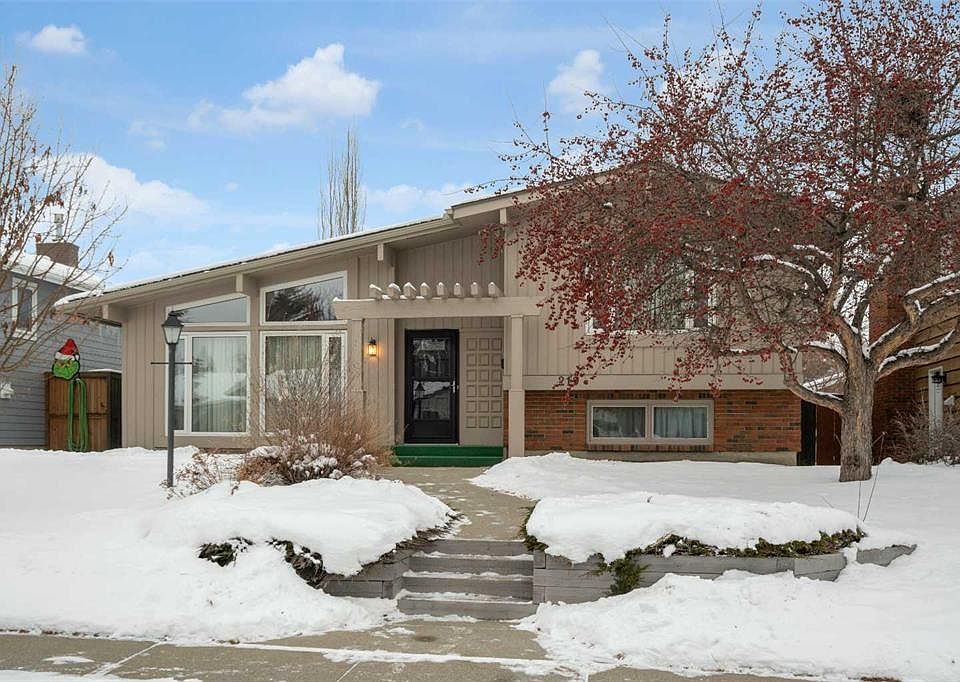 This large mid-century modern style 4 level split home sits on a quiet street close to schools and shops, with easy access to Bow Bottom Trail, Deerfoot, McLeod Trail and Fishcreek park. This home will remind you of a bygone era with beamed ceilings, wrought iron details, and plush carpet. Balanced with the original details of the house are the upgrades including the gas fireplace in the family room, keeping the original look, but replacing the traditional wood fireplace box with a gas insert and the newer bathroom fixtures and style in both bathrooms. The architectural details both inside and out remind us of a bygone era when large lots and individual style were the norm. This is not a cookie cutter house! The home is filled with light because the huge windows, slanted roof and big rooms let in so much sunshine! It makes you feel good just walking in the front door, and you can tell this has been a lovingly cared for home. A unique feature of this property is the fact that levels 3 and 4 were never developed so lots of space available for you to finish with more rooms of your choosing. There is a door to close off the unfinished portion, but it already has everything you could want so not necessary to finish the rest unless you want even more space. It has a good sized kitchen, a lovely family room, a huge living and dining room, 3 very good sized bedrooms and 2 bathrooms! The 3rd level has some framing done but your creativity is still optional for any further development you care to do. You can double your living space as needed. The welcoming front yard and the patio in the private backyard leading to the double car garage make a great space for relaxing or entertaining. 3 Bedrooms upstairs and plenty of space for expanding on the 2 lower levels gives this home a lot of potential with a solid foundation.