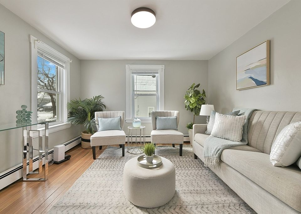 Good things come in small packages! This adorable 4 room colonial style home is the perfect condo alternative. The first floor includes a sunny living room, kitchen with updated appliances and a stunning, fully remodeled laundry/mudroom and bathroom (shower stall only). The second floor has 2 bedrooms (you walk through one bedroom to get to the other). This would work well as a two room primary suite or bedroom and home office combo. Beautiful hardwood flooring and fresh paint. Large outbuilding (once an oversized 2 car garage) is great for clean storage and has tremendous potential to finish. Use as you see fit and bring your imagination. This could be your entertainment or play space (pool table, ping pong, arcade), hobby space, art studio, home gym or office space. Younger gas heating system and newly replaced hot water heater. Shared driveway easement. See photo of easement and plot plan. Why settle for a condo in a shared space or building? Don't miss this exceptional opportunity!