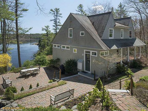 Classic Nantucket style shingled home on the Kennebec. Sited on a park-like 8+ acre parcel with over 400 feet of deep water frontage and a deep water dock. Open floor plan with fieldstone fireplace, gourmet kitchen and wrap around decks. Two outbuildings with parking for 4 cars and additional finished space above.