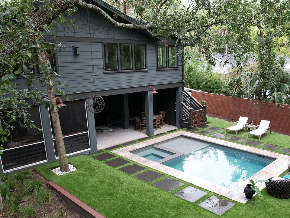 Welcome to the highly coveted Forest Trail neighborhood on Isle of Palms. Whether you're looking for a second home beach house or a full time family residence, this property defines turn key. This 4 bedroom 3 bath, elevated home is available for the first time since its renovation in 2021. At that time the home received a full remodel of the interior and exterior space, a brand new 5V metal roof, Viwinco impact rated casement windows, new plumbing, electrical, commercial appliance package, tankless water heater (Rinnai), and HVAC. The house is wired for sound and security with speakers in the master, kitchen and loggia porch. The interior, hardwood floors throughout, includes an office, playroom/den, dining nook, and a large open floor plan.
