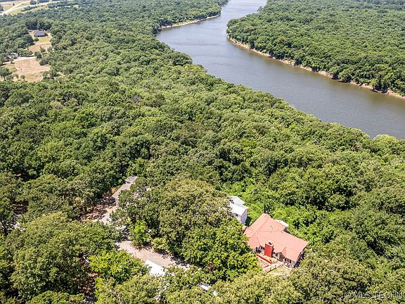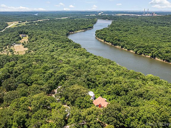“Rare auction opportunity for this area! Auctions online only at WilliamsAuction.com January 20-22. Please come view this home 1-4pm Sundays January 5 & 12!” This is a charming house that overlooks the Neosho River with beautiful vistas to the west and stunning sunsets in the evening. Sit out on the deck and take it all in.The house has three bedrooms w/ two full baths. Enjoy the upstairs bedrooms that have windows that capture the beautiful view. Easy access to Locust Grove, Tulsa, Pryor and other towns in the area. Close to water sports on Grand River or Ft. Gibson Lake. Seller is leaving all appliances, including refrigerator, washer and dryer. Detached two car garage is wired and plumbed and can be converted make a studio or apartment. It's wired for musical instruments, has a screen and projector for Monday night football or Karaoke with friends. Come check out this beauty and make it your own. Quiet and peaceful neighborhood.