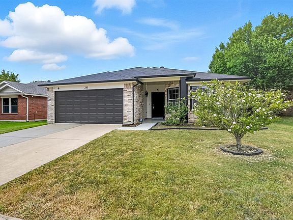 Show-stopping curb appeal sets the tone for this fully updated 3-bedroom, 2-bath beauty. A crisp exterior, vibrant landscaping, and a welcoming front porch create a polished first impression. Inside, an open layout flows across luxury wood-look tile flooring offering the warmth of hardwood with the durability and easy maintenance of tile. The front bedroom features striking bay windows and easily doubles as a light filled home office. A second bedroom offers flexible space for guests or a private retreat. The renovated kitchen showcases quartz countertops, sleek gray cabinetry, subway-tile backsplash, stainless steel appliances, and a walk-in pantry with a decorative glass door. French doors open to a nicely sized, fully fenced backyard perfect for entertaining or quiet evenings. A storage building offers extra space for tools or hobbies, with decorative rock landscaping in front of the building and a separate fenced area provides a ready-made spot for pets. The primary suite provides a peaceful escape with backyard views, and a spa inspired bath boasting a pebble-stone walk-in shower and contemporary fixtures. Tasteful updates throughout give this home a modern, move-in-ready feel in one of Justin’s most convenient neighborhoods. Close to parks, local schools, and major thoroughfares. Schedule your showing today!