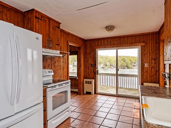 A must see! Beautiful updated lakefront home, offering 2 BR's 1 BTH and a Bonus room below the 2 car garage! Living room features a wall of windows showing a spectacular view of the lake. During those cold winter months, enjoy a cozy fire by the wood burning fireplace. Updated kitchen with granite and stainless sure to impress! Very nicely decorated with many pieces negotiable for the new owner. Detached 2 car garage has a newly renovated bonus room on lower level, also featuring lake views. Perfect for guests, game room, exercise room, art studio, let the imagination choose . Heat and a/c along with a great retro style refrigerator. Wall outlets also include USB ports! Electric garage door opener + keyless entry. Plenty of room for 2 cars in garage leaving several parking spots for guests!! 45 min from NYC!!!
