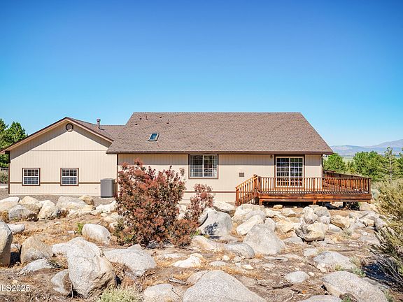 Stunning Mountain Retreat with Panoramic Views. Nestled at the base of the majestic Sierra Nevada Mountains, this exceptional 2,857 sq ft home offers the perfect blend of luxury, privacy, and nature. Set on a spacious 1-acre lot adorned with massive granite boulders and mature landscaping, this 4-bedroom, 2.5-bathroom residence is a true mountain sanctuary. Inside, you'll find soaring vaulted ceilings, an open and airy floor plan, and expansive windows that frame breathtaking views of the Sierra peaks and the sweeping Carson Valley below. The spacious great room flows seamlessly to a large deck—ideal for entertaining or simply soaking in the serenity of your surroundings. The oversized 3-car garage provides ample room for vehicles, toys, and gear, perfectly suited for an active lifestyle. Located just minutes from town, this home offers convenient access to Heavenly Ski Resort, world-class hiking and biking trails, pristine fishing spots, and top-tier golf courses. Whether you're seeking a peaceful year-round residence or a four-season getaway, this private and quiet mountain retreat offers an unmatched combination of location, comfort, and natural beauty.