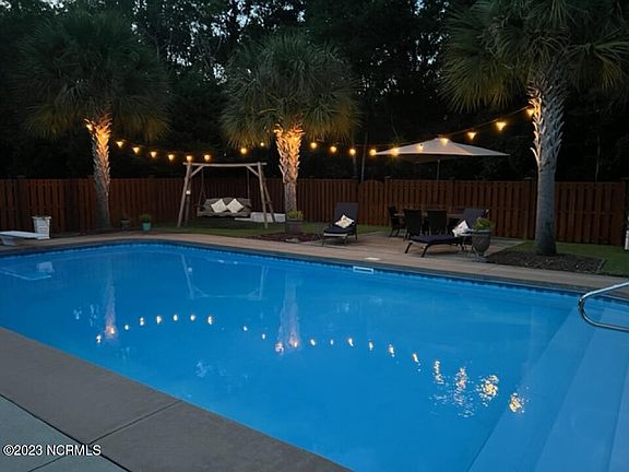 Steps to Intracoastal Waterway with Deeded 20-Foot Boat Slip & New Lift. Slip is last one on south end of the dock for easy access. This Spacious, custom-built 4 BR 3 BA home has been very Well Maintained. Open Floor Plan with lots of natural light. Excellent for Entertaining inside & out. Master Suite is on Main Level along with second bedroom. Newer Hardwood Flooring (2019). Newer Central A/C (2015). Newer Roof (2021). Freshly Painted throughout (2022). Large Easy-to maintain private Saltwater Pool (20x40) with up to 8-foot depth. Beautiful patio area with Fire Pit. Rear Deck features Expansive Screened-in Porch, Hot Tub. Additional land (90 ft. x 50 ft.) beyond rear fence is wooded, ensuring privacy and room for storage/expansion. .46 acres. Community has paddle board/kayak launch area.