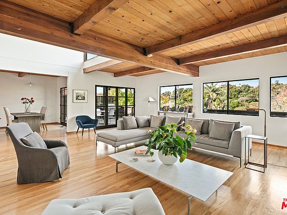 Wonderfully designed modern house for rent on one of the best streets in the Santa Monica Canyon. The central location is complemented by Ocean views & breezes, light, the pool and guest house. The two story wooden structure feels loft like inside with the public spaces, including the kitchen, living room & family room, benefiting from an open 12-15 foot ceiling. There are three bedrooms two baths on the upper level, including the master bedroom with a deck reaching towards the Pacific Ocean. The primary level also offers a den/library overlooking the pool. There are hard wood floors throughout and pervasive use of wood making the house feel warm and familiar. The garage has been converted into a simple guest house while the site offers plenty of outdoor parking.