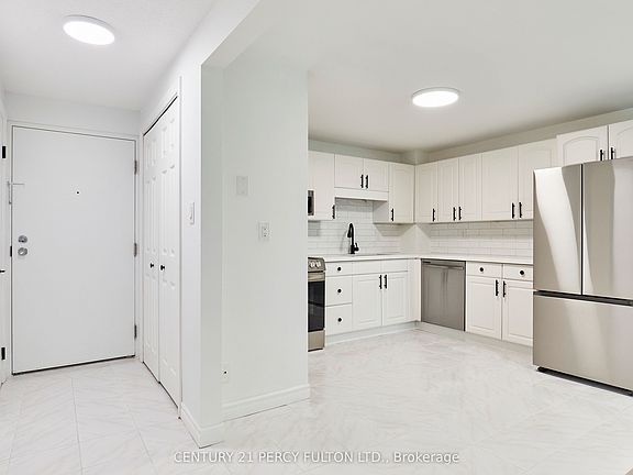 Welcome to #301-219 Main Street North, Uxbridge! Discover the perfect balance of modern comfort and natural beauty in this charming home, ideally located in the heart of Uxbridge, Ontario's Trail Capital. Surrounded by lush greenery, scenic walking trails, and the peaceful pond at Veteran Memorial Park, this residence offers both serenity and convenience in one of Durham Region's most desirable communities. Step inside to a spacious foyer with ceramic tile flooring and a large closet for storage. The updated kitchen features new stainless steel appliances, including a range hood microwave, glass-top oven, dishwasher, and double-door fridge. Quartz countertops, an undermount sink with a sleek black faucet, and an extra-large subway tile backsplash give this space a modern, elegant feel. The bright living room boasts luxury vinyl flooring and a large picture window overlooking mature trees. Step out to your private balcony and enjoy peaceful mornings or relaxing evenings surrounded by nature. The open dining area provides the perfect space for family meals or entertaining guests. The primary bedroom is filled with natural light from two large windows and includes a generous closet. The second bedroom offers flexibility for guests, a home office, or family use, with a large window and spacious closet. The modern four-piece bathroom features ceramic tile flooring, a wide stone-top vanity, and stylish fixtures, combining comfort with contemporary design. Located just steps from Uxbridge's trails, parks, shops, cafés, and restaurants, this home is perfect for anyone who loves nature, community, and convenience. Experience a lifestyle of comfort, charm, and connection. Welcome home to 301-219 Main Street North, Uxbridge, where modern living meets natural beauty, book your private tour today!