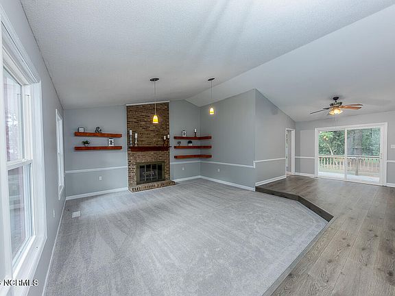Discover an exceptional home that defines comfort, convenience, and style in the heart of Havelock. Located just moments away from MCAS Cherry Point, & a short distance to Historic Downtown New Bern or beautiful beaches of the Crystal Coast, this residence offers new floors throughout, paint and get this: all new Energy Star Thermal Pane Windows with Low-E & Argon Gas! Talk about keeping those energy bills down! There is no HOA & a host of appealing features like a large fenced backyard, with a horse shoe pit, shed, and an expansive deck. Inside, a cozy fireplace exudes warmth & charm, setting the perfect ambiance for gatherings or quiet evenings. The living areas are designed for both comfort & flow, with a great floorplan that accommodates various activities. The well-appointed kitchen comes equipped with modern appliances, ample storage, & a conveniently adjacent dining area. Three spacious bedrooms offer a peaceful sanctuary, ensuring restful nights. The abundance of natural light & thoughtful design elements contribute to a serene ambiance. Local amenities, including schools, parks, shopping, & dining options, are within easy reach, making everyday living effortless.