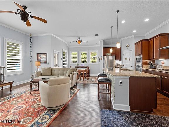 Welcome to the heart of Nocatee living! This beautifully maintained 2-bedroom, 2-bathroom home offers flexible living with an additional flex room that is perfect as a home office or guest space. The Craftsman-style exterior and charming curb appeal set the tone for the warm and inviting interior featuring gorgeous wood floors, plantation shutters, and abundant natural light.