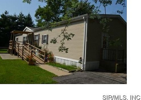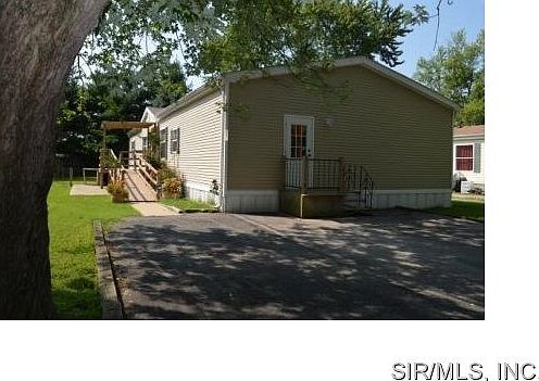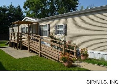 CALL SUPER AGENTS CARI BRUNNER AND SHAWNA HOLTMAN AT 618-830-8622 TO SCHEDULE SHOWING! Updated manufactured home, vacant and ready for viewing! Stroll into your new residence using a wheelchair-accessible ramp, allowing for ease of access in all ages. Once inside, this property features newer wood laminate flooring in both the dining and living areas. The unit not only boasts central AC, but there are two additional window AC units and ceiling fans to help cool off on those particularly sweltering days, and a gas heater included with the home as well to aid in warming up in the winter. The luxury master bath allows for deep relaxation with a soaking tub, double vanity, and stand-alone shower. The lighting system is updated to include recessed lights in the kitchen and a security light system to add extra peace of mind and safety. Both inside and outside the home possess a great deal of storage area, with walk-in closets in the master bath and a plastic shed in yard.