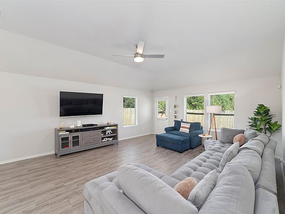 Welcome to Glendale Lakes! This beauty offers 3 bedrooms, 2 baths, and a home office. Make note of the open layout with vaulted 9-ft ceilings. The modern kitchen includes 42" shaker cabinets, quartz countertops, ceramic tile backsplash, Frigidaire appliances, and a large island. The primary suite features dual sinks, a separate tub and shower. Energy-efficient details include a 16 SEER Carrier A/C system and a 40-gallon gas water heater. Enjoy a rear patio and brick front with stone accents. Style, comfort, and value in one beautiful home!