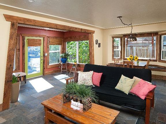 Location, Location, Location! BendZen is located in the "Gold Zone" of Bend... you simply cannot find a better location if you want to walk/bike to everything. Conveniently located between downtown shops and dining, Drake Park, the Deschutes River, the Historic District, and the Old Mill District where you can walk and bike to everything! BendZen is currently available through June 2016. The Cottage is fully furnished and turn-key ready for move-in. Built in 1919 and renovated in 2008, this "old mill cottage" in the heart of downtown Bend was saved from demolition and transformed into a warm and inviting sanctuary. With BendZen you'll find a creative rustic/urban/zen home designed through feng-shui, eco-design, and re-claimed building material crafted to inspire! Featuring intentional design, lots of natural light, eclectic decor, vibrant colors, reclaimed barnwood finishings, custom craftsmanship, cozy fireplace, and many, many more design elements that set this home apart from the crowd. Amenities: Living: Linens, Washer/Dryer. Entertainment: TV, DVD, Kitchen: Chefs delight stocked with gourmet herbs, Cookware, Pots/Pans, and of course: Refrigerator, Gas stove, microwave, dishwasher, blender, ice maker, coffee maker, toaster, dining ware, wine glasses. Outdoor: BBQ grill, Barista table, pond, ornamental garden, level grass area in backyard. Convenience: Located in the heart of Bend between the Deschutes River, Drake Park, Old Mill District, and Downtown.