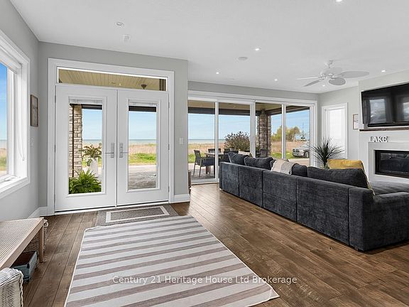A VIEW IN THE FRONT WITH ACCESS IN THE BACK!! Kick back and relax at the Lake in style! Step through the doors and be greeted by an open concept kitchen/living/dining area with large foyer, spacious seating and propane fireplace with live-edge mantle. Bathed in natural light, the space boasts near floor-to-ceiling, wall-to-wall, east-facing windows that connect to a covered patio area with stamped concrete, power screens, pot lights and ceiling fans - ideal for outdoor dining and nightcaps with friends. Also on the main, enjoy a well-appointed kitchen with granite island, counters and breakfast bar peninsula. It connects to a dedicated dining area that walks out through sliding doors to the rear. 2 bedrooms, stackable, main-floor laundry, pantry and a 4pc bath round out the main level. Upstairs, find 3 more bedrooms, with 4pc cheater-ensuite, large storage closet and additional, cozy family room. The sprawling master with balcony walkout is a show-stopper that offers a breath-taking view of Lake Erie, putting this property into a league of its own. BUT WAIT - THERE'S MORE!!! Outside, the backyard connects to the channel with dock access. There is an interlock patio and BBQ area and a green space with plenty of room to run around, play games or have bonfires. There is also an outdoor tiki bar with roll-up garage doors, stool and bar-top seating area, outdoor shower/bathroom and storage shed with power. If that's not enough, enjoy nearly 70ft of rear dock ending with a 9x15 seating area with pergola, overlooking the channel. Other updates: Sprinkler/irrigation system, generator, SONOS sound system throughout, in-floor heating throughout the main, 200amp service, bubbler, see-doo float pad and no rental equipment whatsoever, OH MY! This home is incredible and move-in ready. All that you see in this lovely home is negotiable, so don't be shy! The channel fees have also been paid for 2025. Turkey Point is an incredible place to spend time. Come find out!