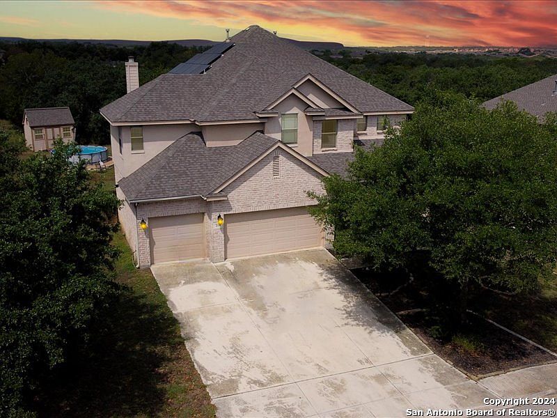 **Stunning 4-Bedroom Home with Spectacular Amenities and Solar Panels!** Discover this unique 4-bedroom, 3.5-bathroom home on an oversized lot backing into a peaceful greenbelt. With three living areas, a dedicated office, and solar panels, this home offers space and energy efficiency. The gourmet kitchen features granite countertops, stainless steel appliances, a huge pantry, and a coffee/dry bar. Retreat to the master suite with a private balcony, double vanities, walk-in closets, and a spa-like bathroom. The expansive backyard is perfect for BBQs and entertaining, also equipped with an above-ground pool. Located in a sought-after subdivision, enjoy spectacular amenities like nature trails, lifeguarded pools, and splash pads. This is a rare find-don't miss out!