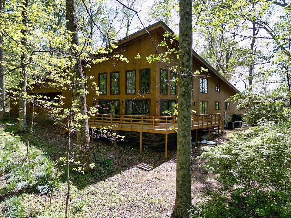 Retreat to this secluded, five bedroom, two and a half bath Contemporary home tucked away in a grove of trees with two car garage with workshop and wrap-around deck. Located minutes to downtown Blacksburg, Virginia Tech, 460 Bypass and shopping, you will have all the conveniences of in town living with privacy on 1.88+ private acres. Enter thru the covered patio into the great room where you will be greeted with a wall of windows and cathedral ceilings. A cozy living area is off to the side. Create meals in the light and airy kitchen with granite countertops, an open brick oven, wet bar and easy access to covered patio. Balcony overlooks great room below and spacious primary bedroom has sitting area with picture window. Extra living and storage space, this home will make you feel like you are on vacation every day. Call for a private showing today!