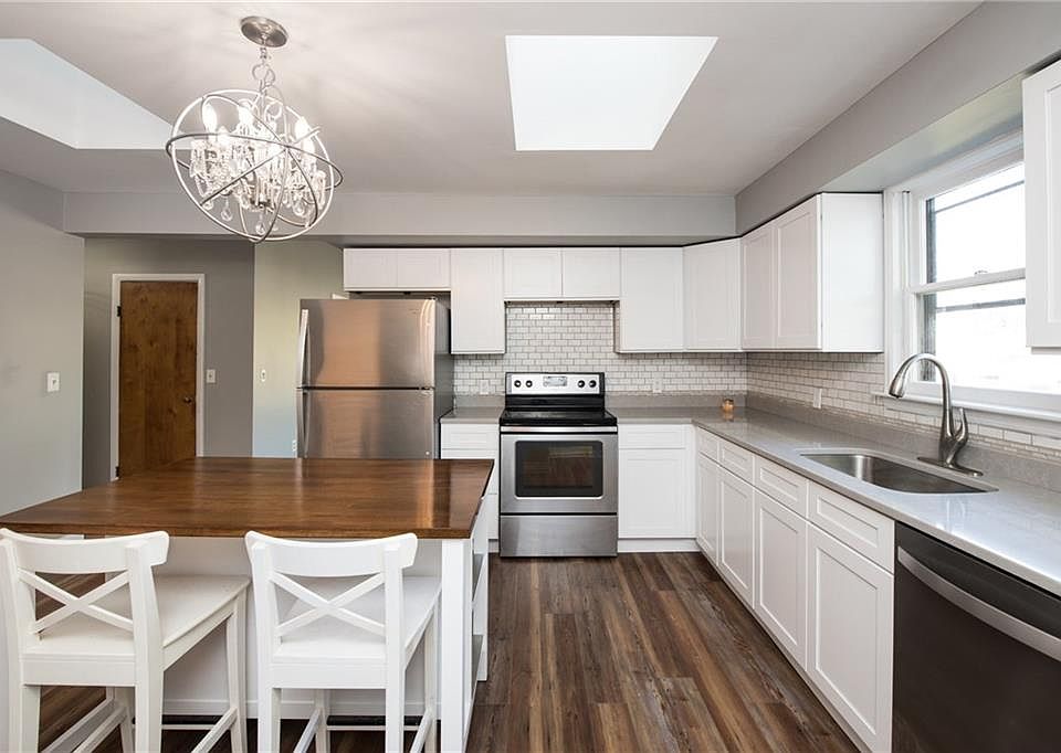 This one you must see to believe- deceiving LARGE ranch with partially finished basement and spacious fenced yard. Located across from Lonsdale Elementary School and easy access to the highway, Lincoln Woods and shopping. All the big things have been done: young roof, vinyl siding, windows, gas heating system and a brand new sewer line! Inside will WOW you with a newly updated kitchen with white cabinetry, quartz counter tops, subway tile back splash and new appliances! Four (4) spacious bedrooms, one with a walk-in closet and full updated bath with a gorgeous tile shower. Downstairs there is a partially finished recreation room with more space that could be finished or just tons of storage space and a walk out to the generous sized fenced yard that has just been landscaped. Off street parking for three cars. Ready for you to just move in! Being Sold in "as is" condition.