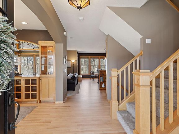 Discover tranquility in this charming American Classic home in the sought-after Liberty on the Lake community. Situated on a private wooded wlkout lot, this residence offers peace & serenity w/captivating views of nature & a scenic wetland. This home welcomes you w/ maple flrs (refinished 2024) & cabinets, screen porch, Wood-paneled walls & custom-built hutch, mudrm w/cubbies & media area add character. Ktchn feat s/s appl, quartz count, stylish tile backsplash, & pantry. A pocket office main lvl w/a built-in desk works for work-from-home needs. The prim suite boasts a vaulted ceiling & a large walk-in shower w/dual heads, providing a spa-like touch. 2 of the bedrms on the upper lvl share a jack-n-jill bath w/private rm vanities. A large third-flr loft adds versatility to the living spaces. Andersen wind, 3-panel drs, central vac, Roof/furnace in 2017, Ext paint 2022, Carpet upper 2 lvls 2024. Oversized gar has storage above w/pull-down stairs. Enjoy the trails, stores, dock, play stru