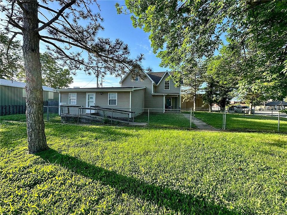 This story-and-a-half home boasts ample space for you to customize to your liking. It is located just a block off the city square and has been rented as an Airbnb. Inside, you'll find an 11x17 bedroom, two spacious non-conforming bedrooms (lacking closets), and two inviting living areas. The generously sized laundry room with extra shelves provides an ideal space to install a deep freeze, keeping it conveniently out of the way. Outside, the property features a fenced, fully shaded yard on a corner lot with a storage shed. Additionally, the back stairs lead to a gutted room that can serve as extra storage or be transformed into a finished apartment, offering versatile possibilities. This home has central heat and air and a ramp for added convenience.