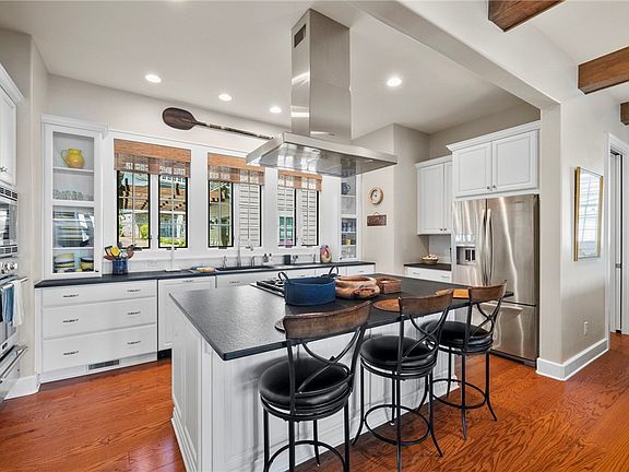 At the heart of the home is a gourmet kitchen equipped with stainless steel appliances, custom cabinetry, and an oversized island perfect for casual dining. The kitchen seamlessly flows into the dining area and cozy living room, complete with a fireplace and plenty of space for family and guests.